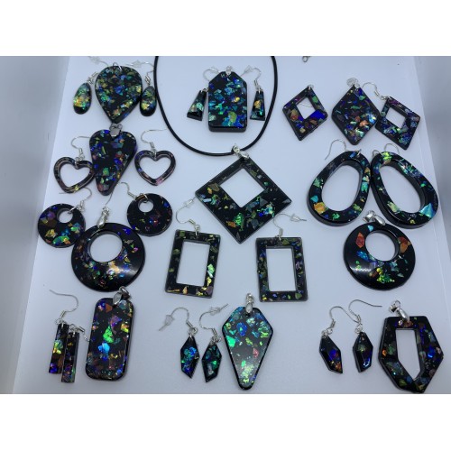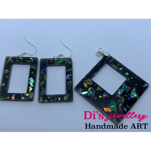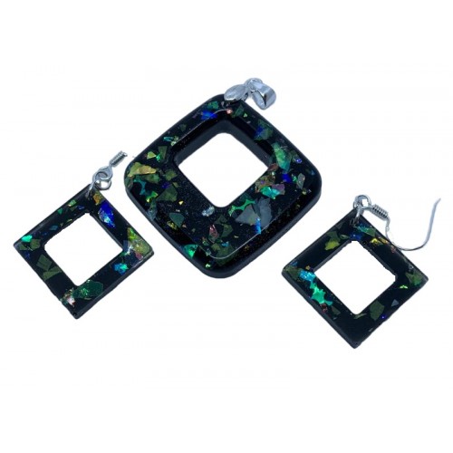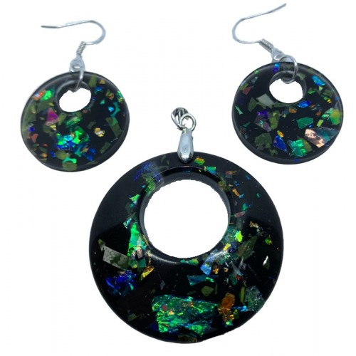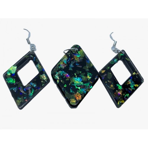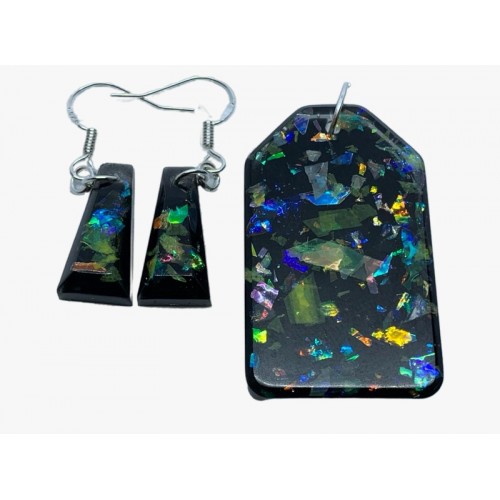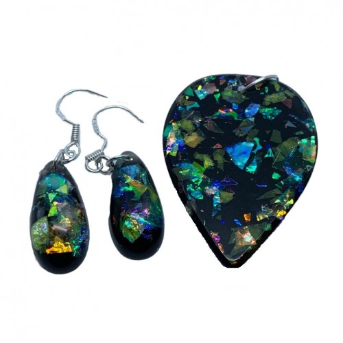 Amazing iridescent earrings and medallion set with sterling silver 925 plated, in different shapes, each of them at the same prices. Just let us know in the description which one you want for you when you place the order.